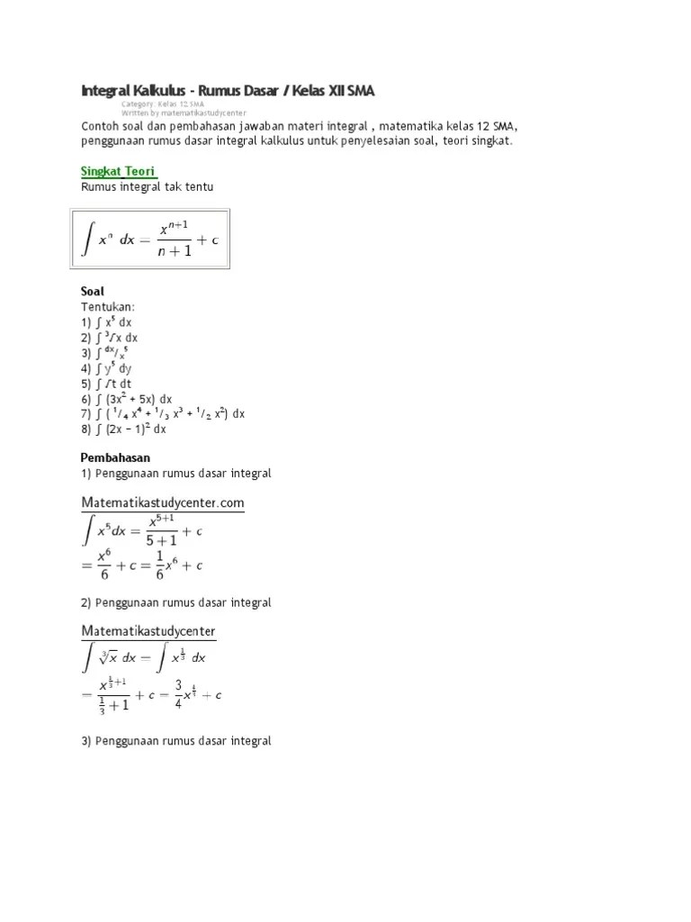 Materi Integral: Pengertian, Jenis, Sifat, Contoh Soal! - Blog …