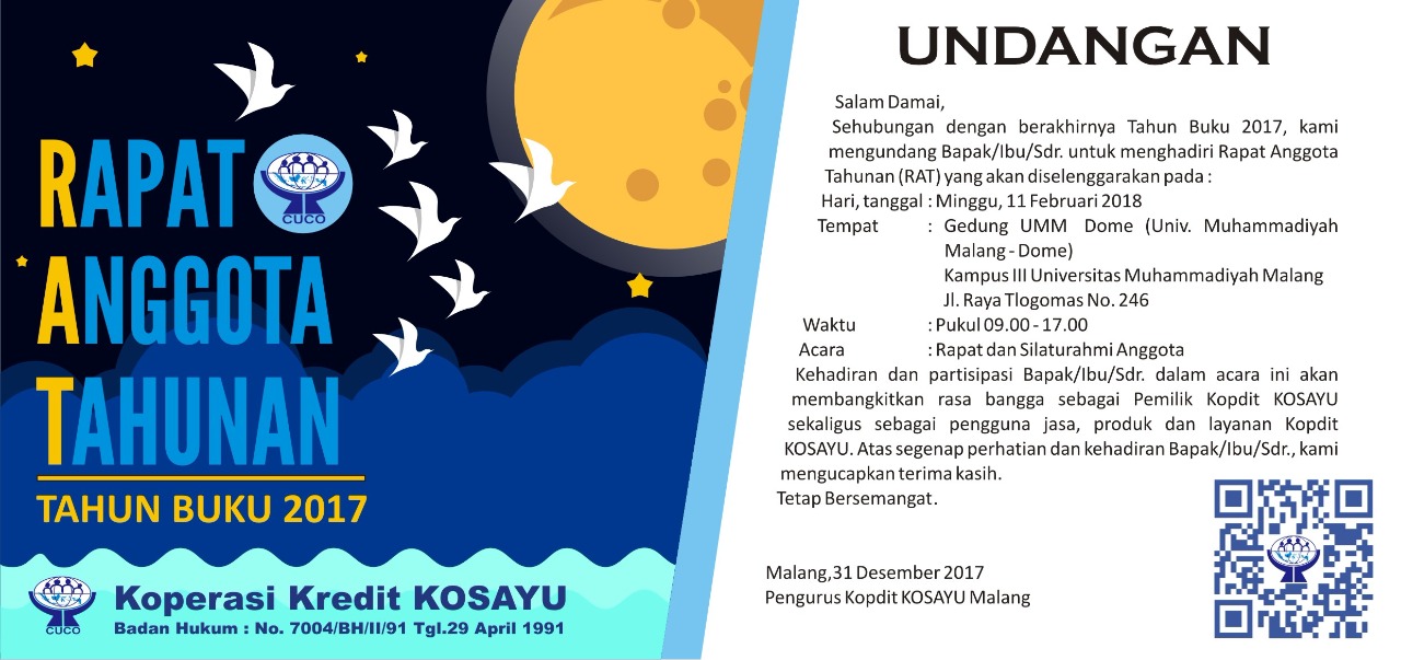 UNDANGAN RAPAT ANGGOTA TAHUNAN – Tahun Buku 2017 – KOPDIT KOSAYU