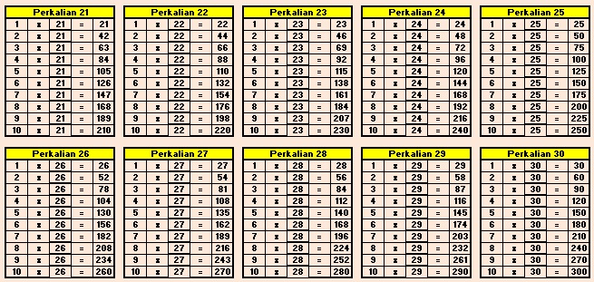 Tabel Perkalian 1 Sampai 250