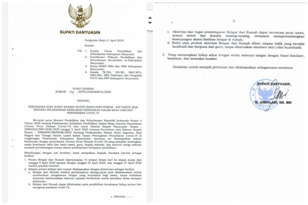 INFORMASI BELAJAR DARI RUMAH BAGI PELAJAR BANYUASIN DIPERPANJANG …